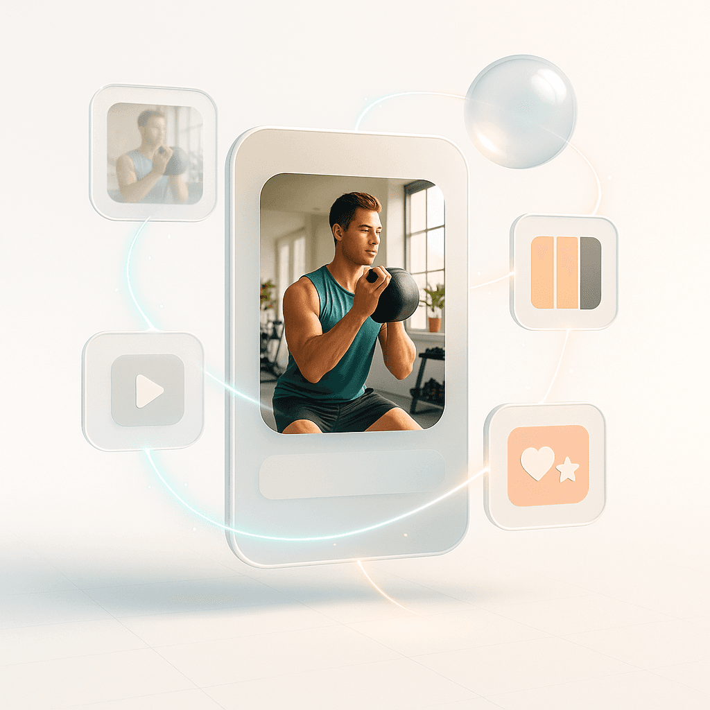 Ultra-realistische 4K-Bilder für dein Gym, Studio, Café, Autohaus & mehr – handselektiert und mit klarer Werbewirkung.