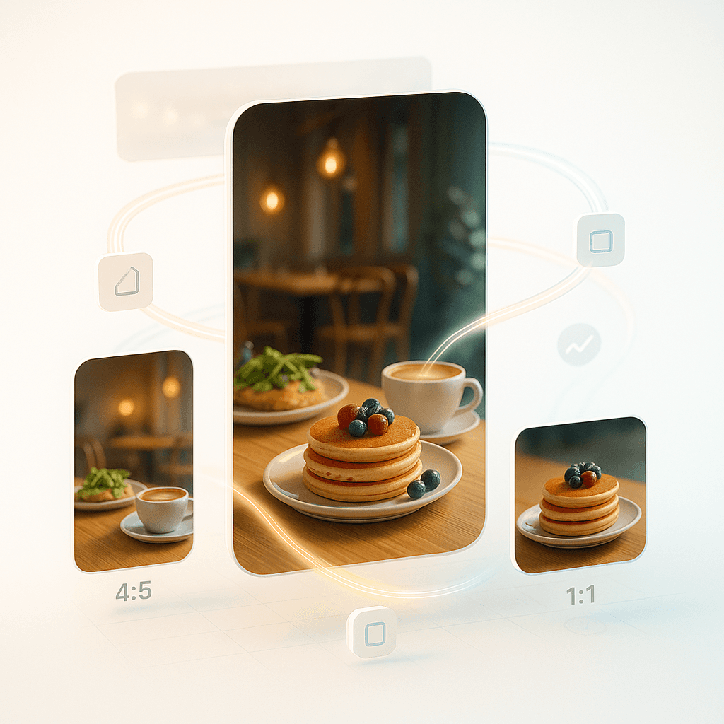 9:16, 4:5, 1:1 – du bekommst die wichtigsten Formate in mehreren Varianten, inkl. Anpassung für Aktionen & Angebote.